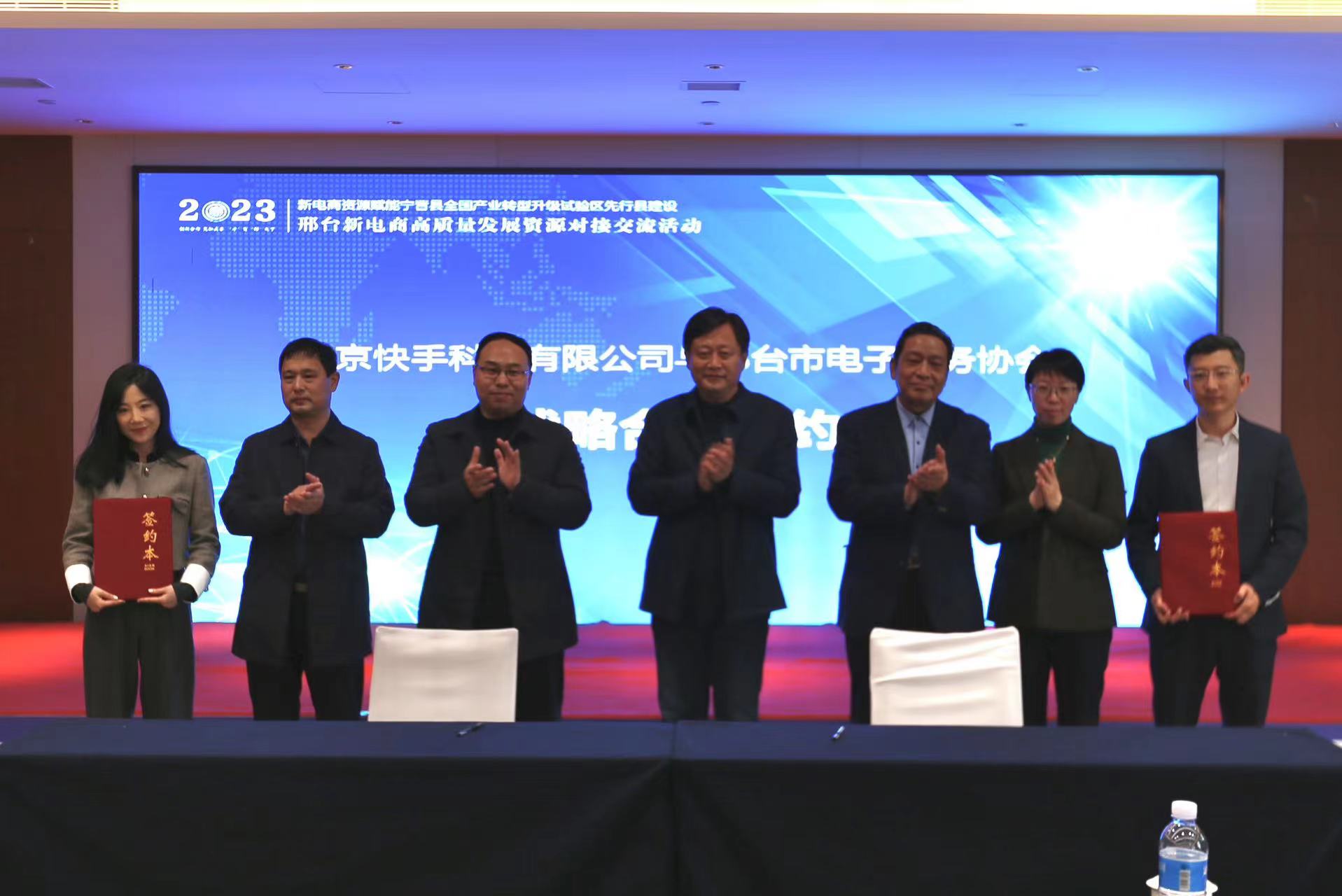 会议期间,多家平台企业达成合作意向,举行签约仪式。北京快手科技有限公司与邢台市电子商务协会、快手电商与重点企业代表、河北交投电商与重点企业代表分别达成战略合作集中签约,多位领导证签。