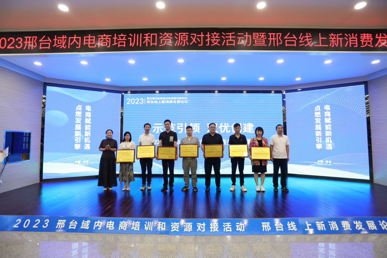 随后,河北省电子商务协会执行秘书长袁国平、邢台市商务局副局长夏会彪为获得“2022-2023年度省级电子商务示范基地和电子商务示范企业”代表颁发奖牌和证书。