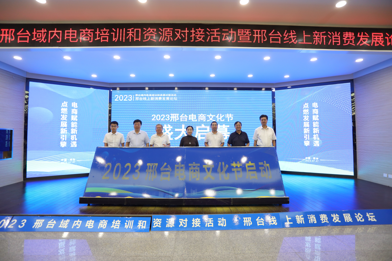 为进一步夯实产业强市基础,充分发挥新电商激发消费市场活力和促进经济复苏的积极作用,现场由河北省电子商务协会执行秘书长袁国平、邢台市商务局副局长夏会彪、邢台市商务局电子商务和信息化科科长巩景民、邢台市财政局经济建设科科长韩增收、中国联合网络通信有限公司邢台市分公司副总经理郑晓强、河北科技大学经管学院电子商务系主任高文海、邢台市商务局电子商务和信息化科副科长王帅共同启动邢台电商文化节。