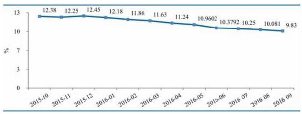 2016年9月,网贷行业综合收益率首次跌破10%,为9.83%,环比下降了0.25%,同比下降了2.8%。《暂行办法》出台后,网贷平台资产端竞争加剧且合规调整成本增大,部分平台主动下调综合收益率,行业综合收益率相应下行。
