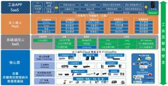 雷锋网了解到,当前,工业富联的工业互联网平台架构包括核心层(采集关键有效微观纳米数据)、基础通用云IaaS、富士康云PaaS和工业APP SaaS四个层面。其中,富士康Fii Cloud数据采集平台Core Pro组成部分包括工厂设备、机台控制/监控、工业网关、核心层运算等。