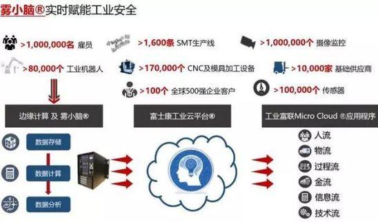 “腾云驾雾”,工业富联一方面以Fii Cloud云平台为基础,另一方面,以雾小脑作为支撑,为生产线就近提供边缘智能服务。该系统整体工作情况是,基于Fii Cloud云平台和雾小脑,集合细分领域的技术、解决方案等,面对作业场景出现的共性问题,构建起Micro Cloud(专业云)的完整生态。