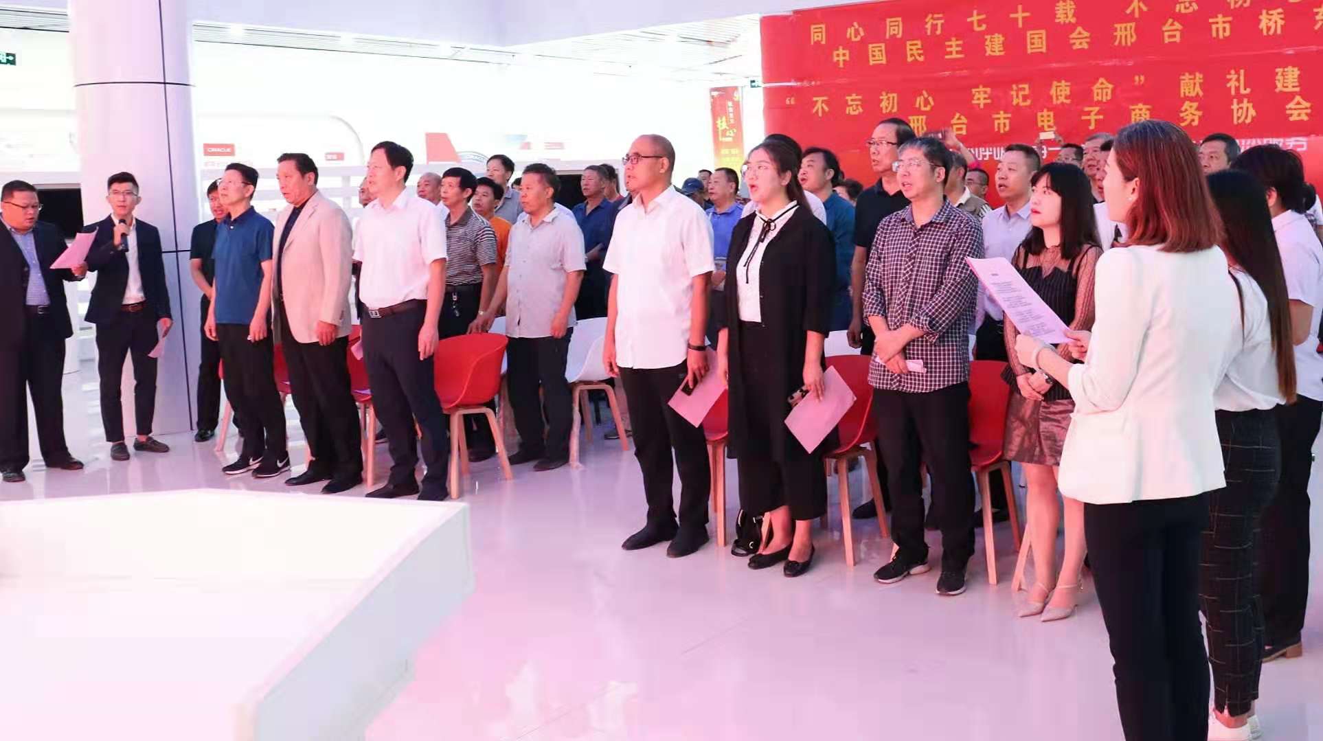 此次活动正值祖国70周年华诞之际,奋进新时代,忠诚履职,砥砺前行,活动伊始,全体与会人员起立共同歌唱《我的祖国》,现场气氛高涨,感情热烈!《我的祖国》由邢台市电子商务协会会长高鹏重新填词,分为致敬经典、缅怀先辈、努力奋斗、迎接美好明天四部分组成,共同为中华民族伟大复兴中国梦加油!