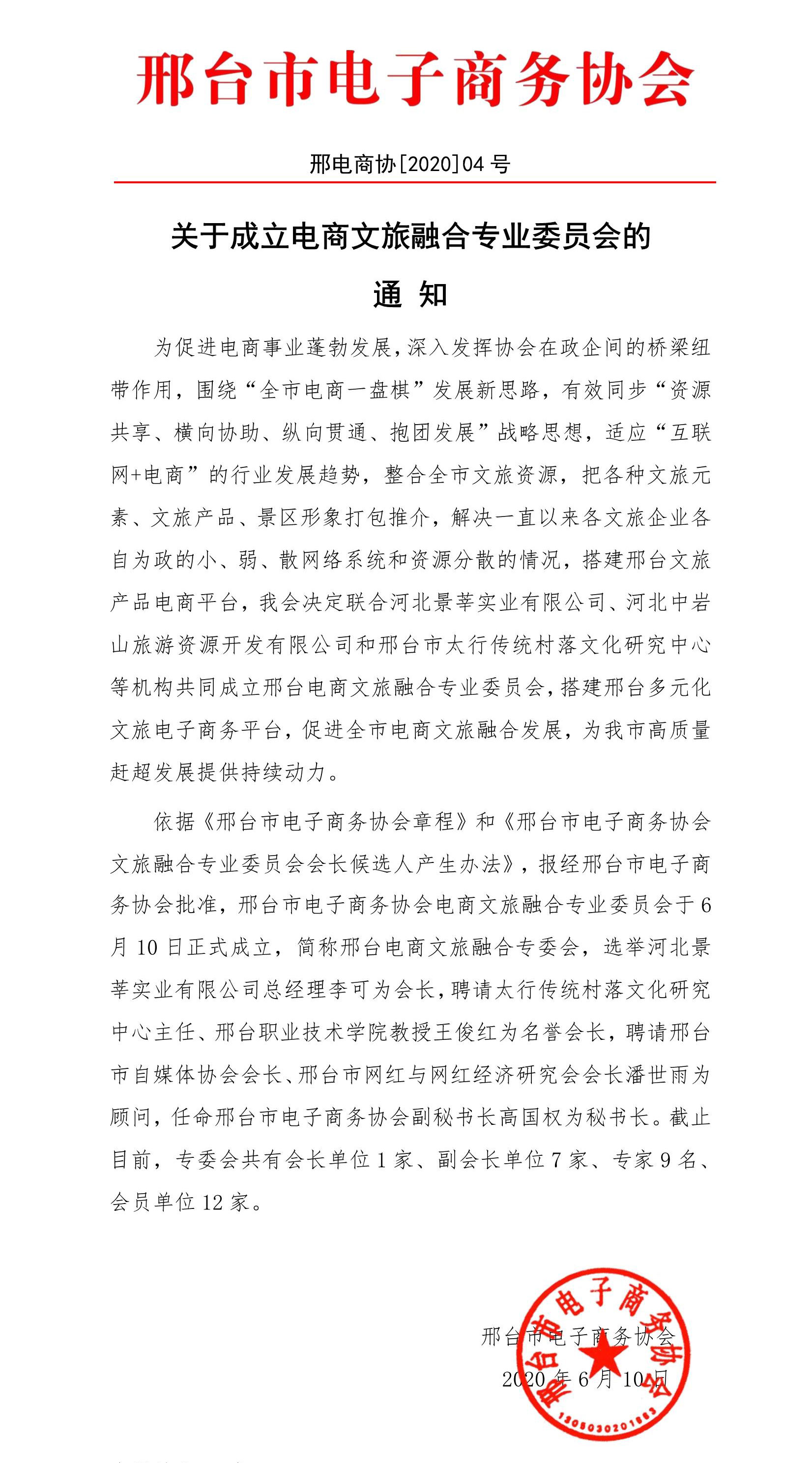 关于成立电商文旅融合专业委员会的通知 发布时间:2019-06-10 | 关注: 上一条 上一篇: 京东云代表来我市考察调研 下一条 下一篇:河北机电职业技术学院大学生实习基地签约揭牌仪式在隆世公司隆重举行