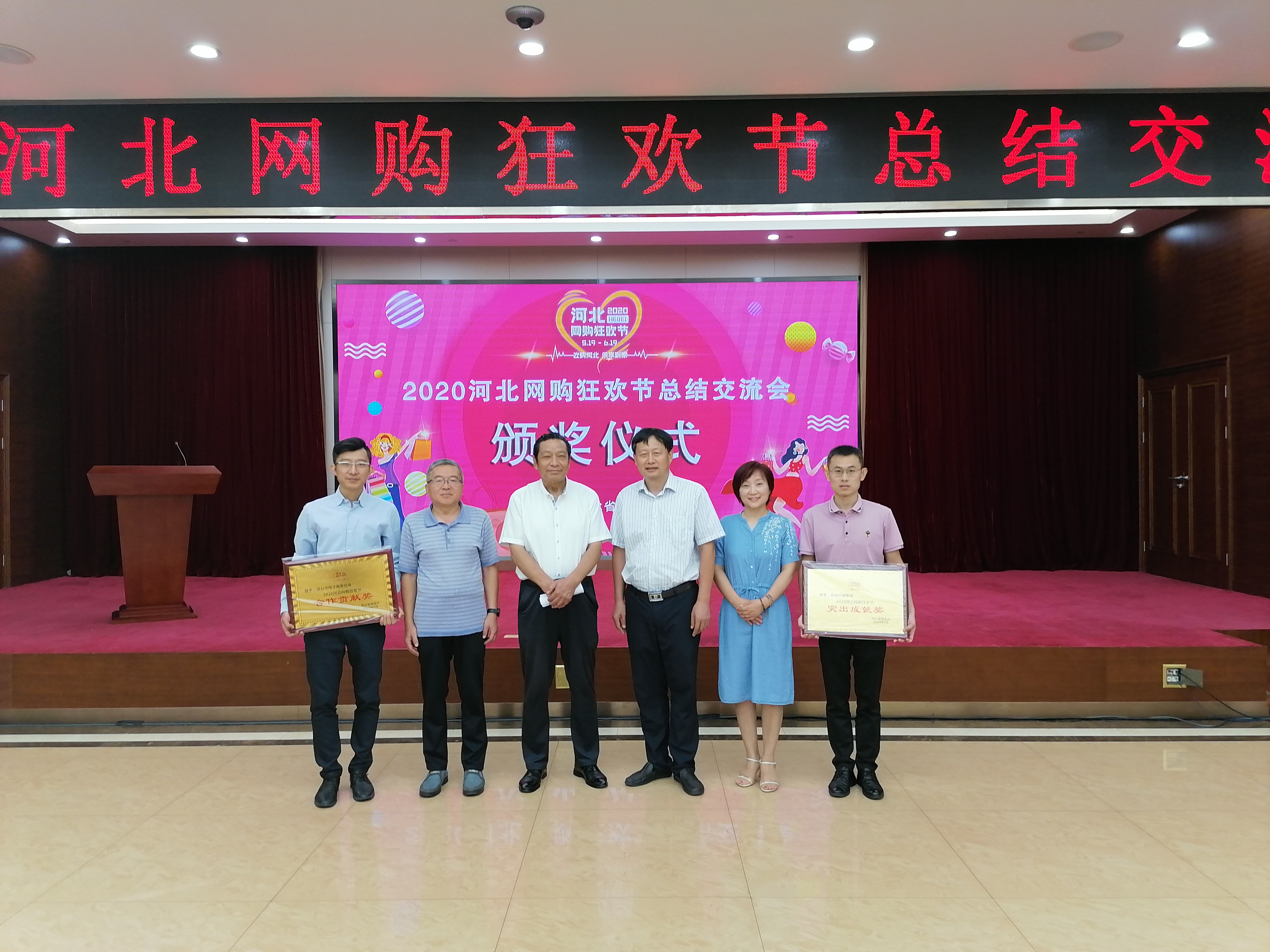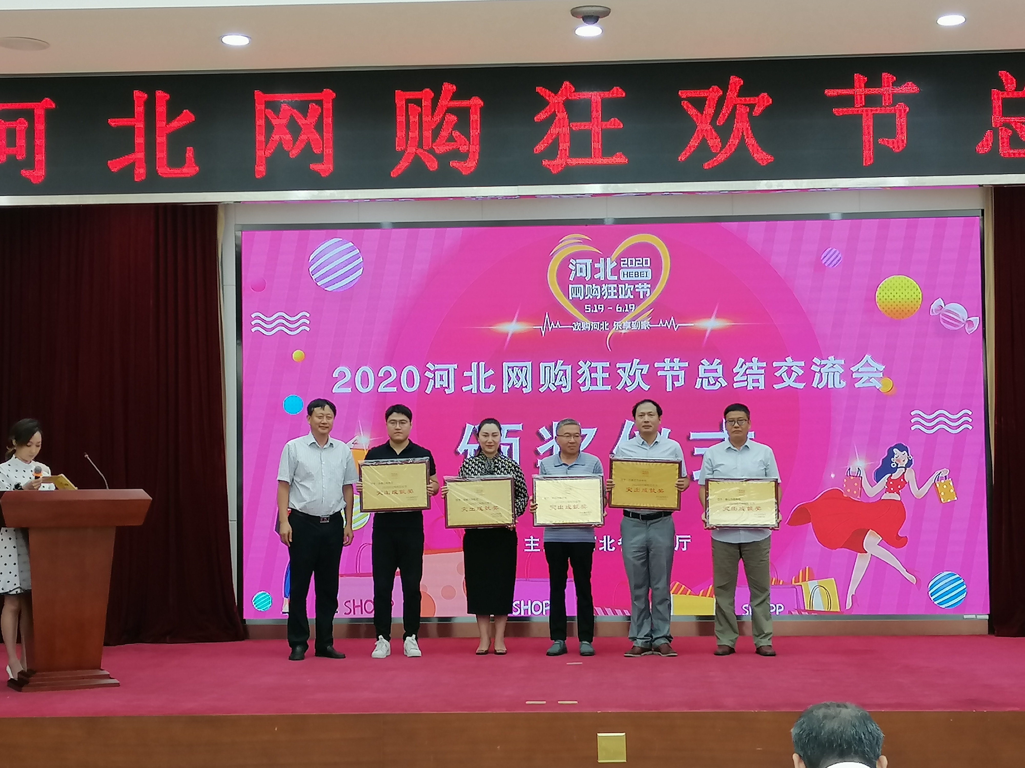 9月9日,2020河北网购狂欢节暨电子商务工作总结交流会在省人大常委会会议中心举办,邢台市商务局获得了“网购狂欢节突出贡献奖”,沙河市商务局获得了“网购狂欢节优秀组织奖”,邢台市电子商务协会获得了“网购狂欢节合作贡献奖”。